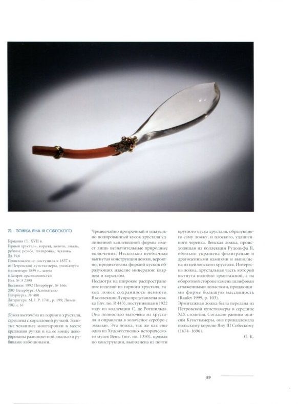 Каталог выставки посвящен коллекции изделий из кварца. Впервые вместе представлены около 200 лучших эрмитажных памятников из различных отделов музея, которые выполнены из горного хрусталя и ближайших его "родственников": дымчатого кварца и аметиста. Включены произведения, созданные на протяжении огромного периода - с V в. до н.э. до начала ХХ столетия, что дает возможность познакомиться с резчиками различных школ, стран и эпох. В каталог включены предметы, принадлежавшие кардиналу Альдобрандини, Анне Клевской, Яну Собескому, Августу Сильному, Петру I и др. Многие памятники публикуются и воспроизводятся впервые, что делает каталог особенно интересным и значимым.