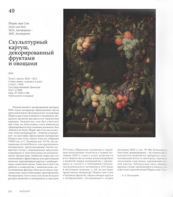 Каталог имеет не совсем обычную для читателя структуру, поскольку разделен на три части: "Живопись", "Ботанические иллюстрации" и "Декоративно-прикладное искусство". Каждый раздел включает научные статьи и каталожную часть. Раздел "Живопись" знакомит читателя с историей формирования жанра натюрморта и его типологией, освещает роль отдельных художников в развитии этого направления в живописи. Каталожная часть представлена картинами Франса Снейдерса (1579-1657) и фламандских мастеров декоративной живописи XVII столетия из собраний Государственного Эрмитажа, ГМИИ им. А.С. Пушкина, Научно-исследовательского музея при Российской академии художеств и частных коллекций. В разделе "Ботанические иллюстрации" специалист из Санкт-Петербургского университета рассказывает о происхождении многих растений, изображенных на фламандских натюрмортах, а в приложении к статье на некоторых экспонируемых картинных определены конкретные растения. Творчество художницы-энтомолога Марии Сибиллы Мериан (1647-1717) представлено акварелями из Санкт-Петербургского филиала Архива Российской академии наук. Завершает каталог раздел "Декоративно-прикладного искусства", где произведения из фондов Эрмитажа, созданные мастерами Западной Европы и Востока, прекрасно дополняют живописную часть, расширяя наши представления об искусстве Фландрии XVII века и культуре эпохи барокко. Книга рассчитана как на специалистов, так и на широкий круг любителей искусства.