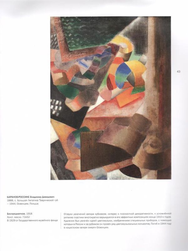 В альбоме впервые достаточно полно опубликована одна из- самых ярких и значительных коллекций мастеров русского авангарда из собрания Саратовского Радищевского музея. Художники первой четверти ХХ века принадлежали к разным творческим союзам и группам ("Бубновый валет", "Союз молодежи"), рабдотали в русле футуризма, супрематизма, абстракционизма, конструктивизма и других новаторских течений того времени, но объединяло их одно -они находились в авангарде поисков новых художественных форма. Имена Казимира Малевича, Василия Кандинского, Владимира Татлина, Марка Шагала, "амазонок русского авангарда" - Ольги Розановой и Александры Экстер широко известны во всем мире. Отдельную главу альбома составят произведения живописи и графики, созданные в Саратове в эпоху "культурного взрыва" - в конце 1910-х - 1920-е годы. В это время в нашем городе работали такие художники, как Валентин Юстицкий, Евгений Егоров, Алексей Кравченко, Давид Загоскин, николай Симон. Имена авторов ярких неордлинарных работ не так популярны, но результаты их творческих поисков весьма убедительны. Издание предназначено широкому кругу читателей, интересующихся вопросами отечественной культуры.