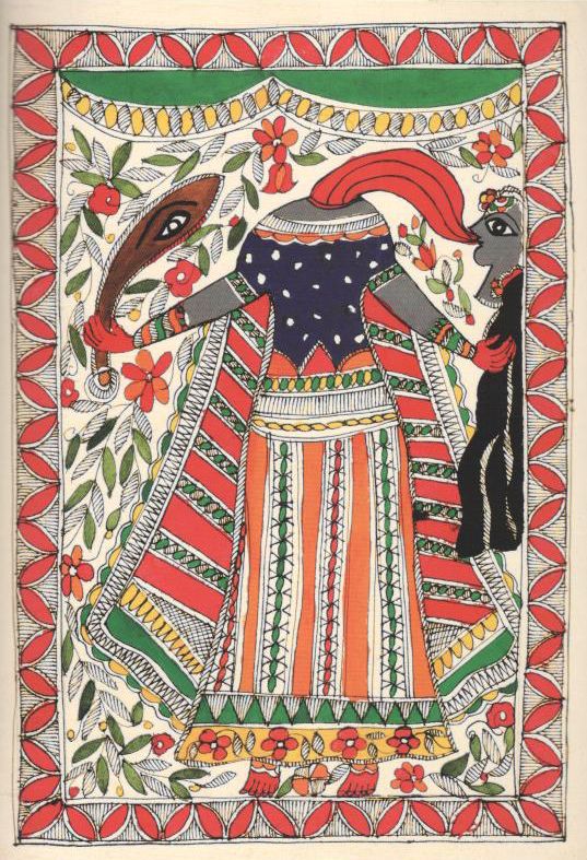 Рисунками мадхубани (митхильскими рисунками) называются ритуальные настенные росписи, создаваемые женщинами индийского штата Бихар в деревенских домах. Название мадхубани дано по названию одноименного района. В настоящее время картины в характерном мадхубанском стиле выполняются на бумаге и ткани, дереве и металле. Перенос изображений со стен на бумагу произошел во второй половине 1960-х годов после сильнейшего экологического и экономического кризиса в регионе. Чтобы найти новый источник несельскохозяйственного дохода для региона, правительство призвало художниц выполнять свои рисунки на самодельной бумаге для продажи. В результате сформировался своеобразный стиль, отличающийся непосредственностью исполнения, яркостью красок, обилием религиозных и космогонических сюжетов. Традиционными цветами мадхубани являются темно-красный, зеленый, синий черный, светло-желтый, розовый и лимонный. Основных изображаемых тем четыре: индийские божества (Кришна, Рама, Лакшми, Шива, Дурга, Сарасвати), небесные тела (солнце и луна), социальные события (например, свадьба), геометрические сюжеты.